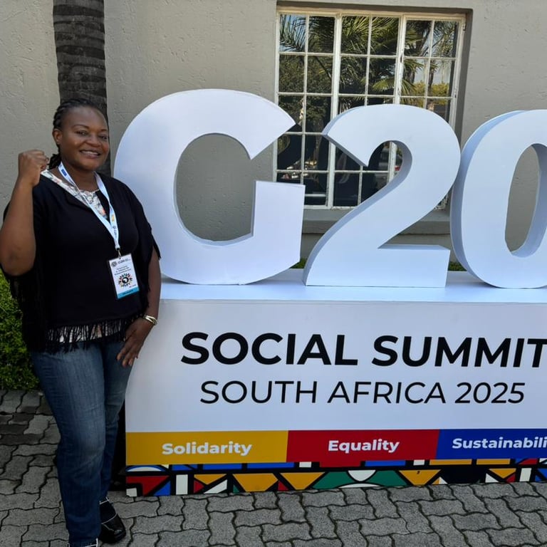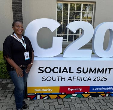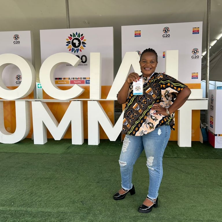 Youth Impact Organization’s Executive Director, Belinda Somanje Chimombo, is in South Africa attending the G20 Social Summit, taking place from 18–20 November in Ekurhuleni, Gauteng. The international gathering brings together civil society leaders, governments, and global partners under the theme “Solidarity, Equality, Sustainability.”